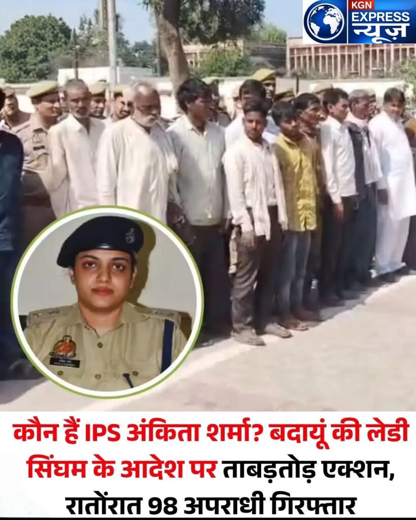 उत्तर प्रदेश के बदायूं में पुलिस एक्शन मोड में है। अपराधियों के खिलाफ बड़ा अभियान चल रहा है। बदायूं में एसएसपी अंकिता शर्मा के कमान संभलने के बाद ही एक्शन तेज हो गया है। लेडी सिंघम के नाम से मशहूर अंकिता शर्मा ने बदायूं में कार्यभार संभालते ही साफ कर दिया कि जिले में अपराध बर्दाश्त नहीं किया जाएगा। एक ही रात में उनके निर्देशन में मेगा ऑपरेशन अभियान चला है। उन्होंने कहा कि 98 अपराधी जेल की सलाखों के पीछे भेज दिए गए हैं।