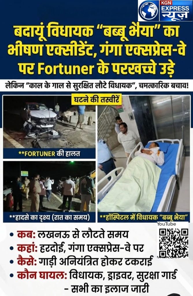 लखनऊ से लौटते वक्त गंगा एक्सप्रेस-वे पर हुए एक रूह कंपा देने वाले हादसे में विधायक जी और उनके साथी बाल-बाल बच गए।